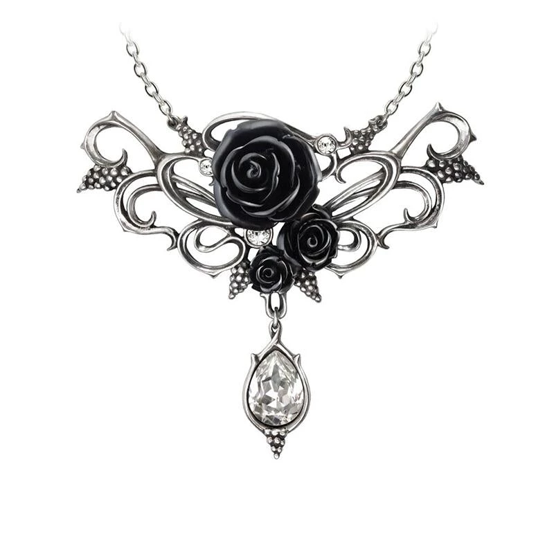A sumptuous necklace with a romantic motif hiding, or revealing, a secret libertine passion for wine and sensual pleasures.