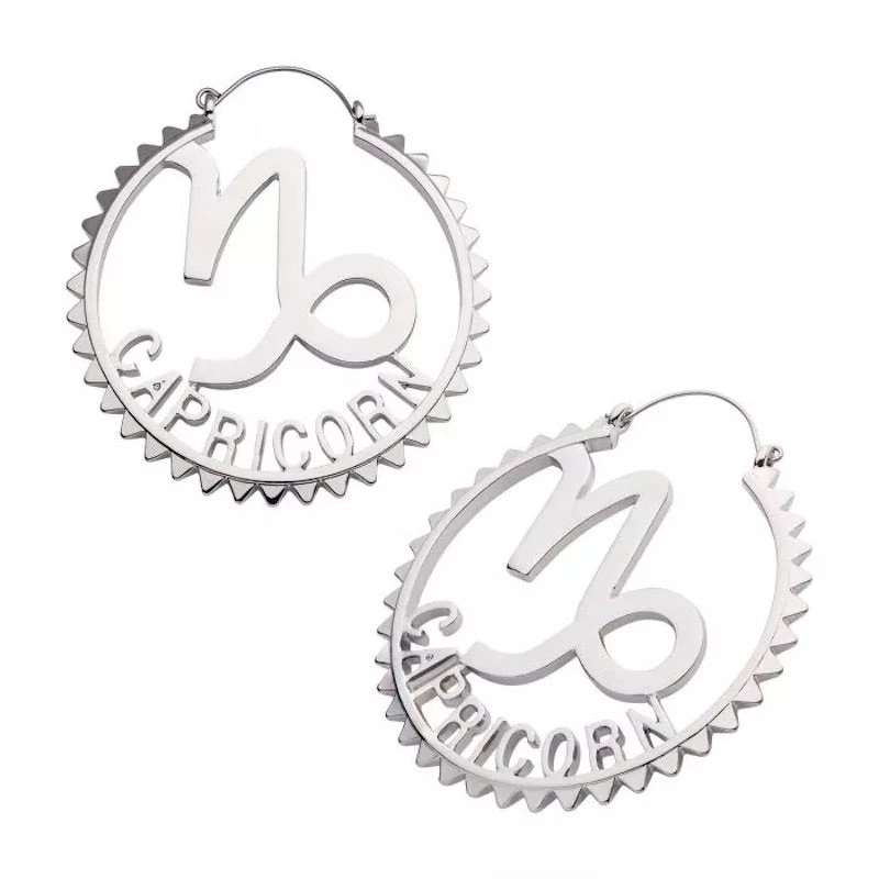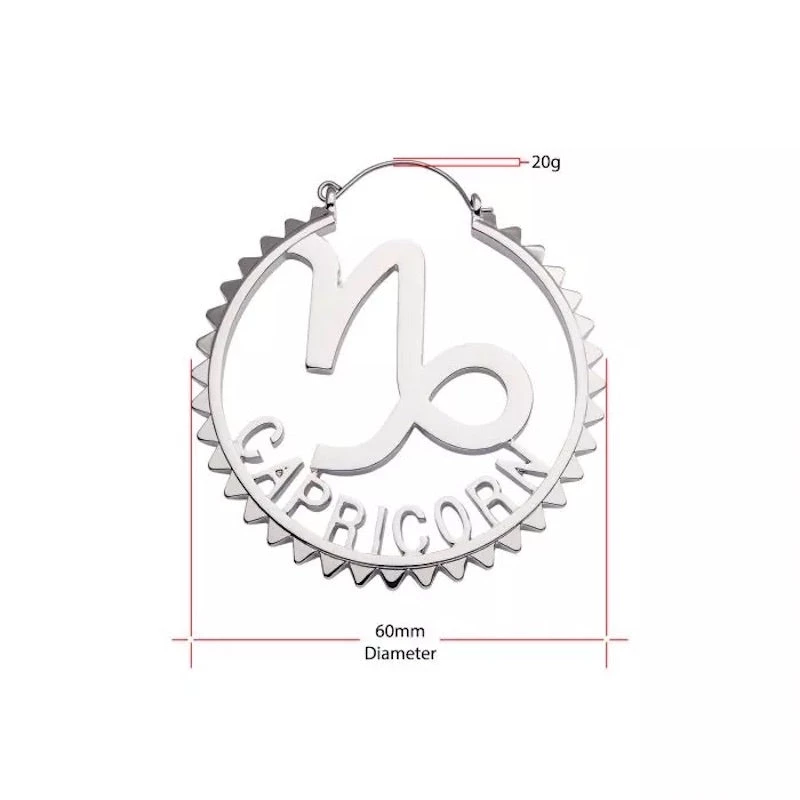 20g Stainless Steel Post and Zinc Alloy Plated Capricorn Plug-Friendly Hoops with Opalite Pendulum. Plug Hoops were designed to fit comfortably in any flesh tunnel style of body jewelry worn in the earlobe. The post is made from Steel and can be worn as a normal ear piercing. Sold as a Pair.