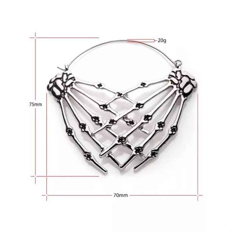 20g Stainless Steel Post And Zinc Alloy Skeleton Hands Embrace Plug-Friendly Hoops. Sold as Pair. Plug Hoops were designed to fit comfortably in any flesh tunnel style of body jewelry worn in the earlobe. The post is made from Stainless Steel and can be worn as a normal ear piercing.