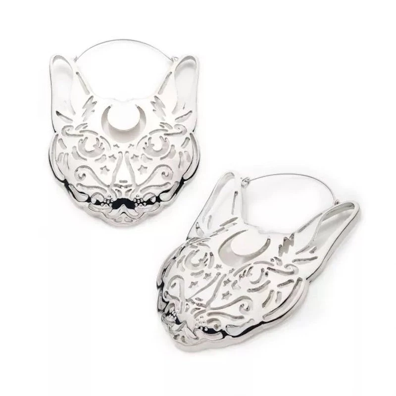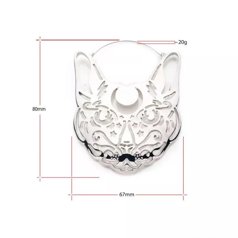 20g Stainless Steel Post with Silver Plated Zinc Alloy Witchy Cat Plug-Friendly Hoops. Sold as Pair. Plug Hoops were designed to fit comfortably in any flesh tunnel style of body jewelry worn in the earlobe. The post is made from Stainless Steel and can be worn as a normal ear piercing.