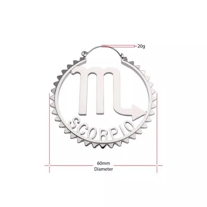 20g Stainless Steel Post and Zinc Alloy Plated Scorpio Plug-Friendly Hoops with Opalite Pendulum. Plug Hoops were designed to fit comfortably in any flesh tunnel style of body jewelry worn in the earlobe. The post is made from Steel and can be worn as a normal ear piercing. Sold as a Pair.