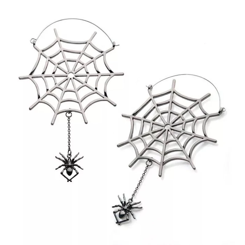 20g Stainless Steel with Sliver Plating Dangle Spider Web Plug Hoops. Plug Hoops were designed to fit comfortably in any flesh tunnel style of body jewelry worn in the earlobe. The post is made from Stainless Steel and can be worn as a normal ear piercing.