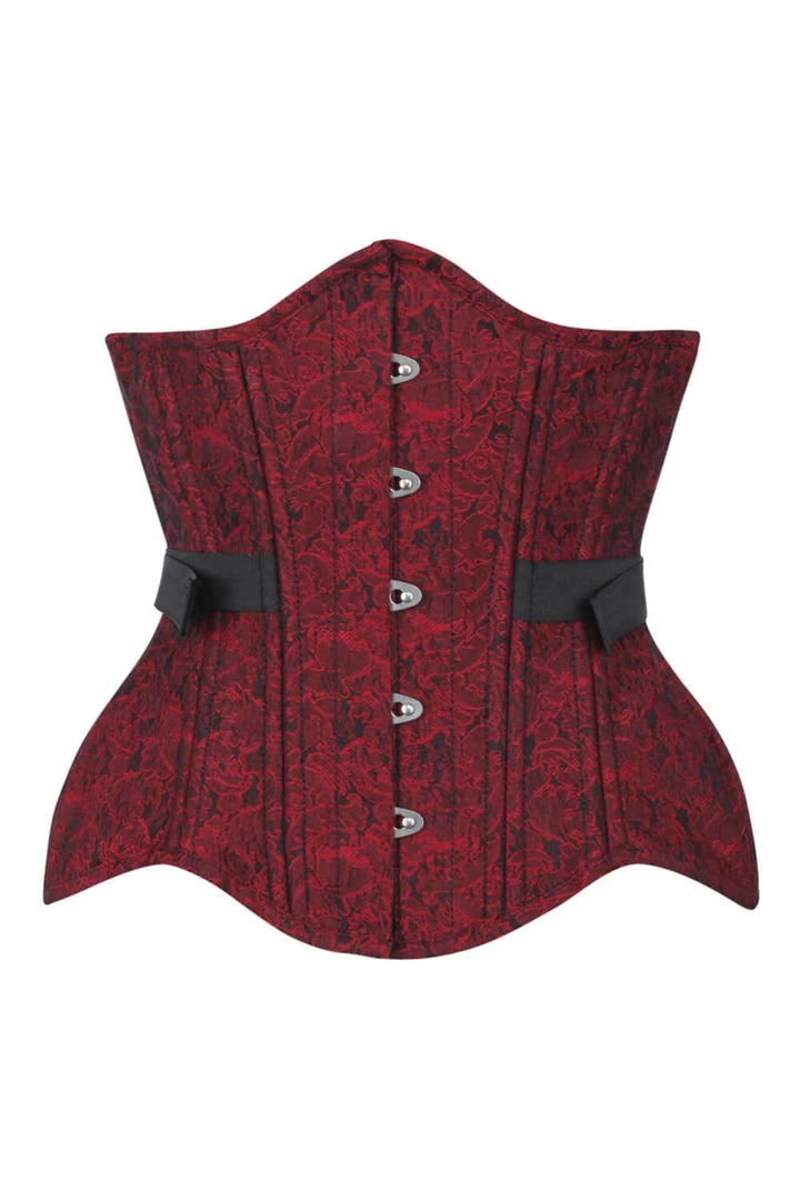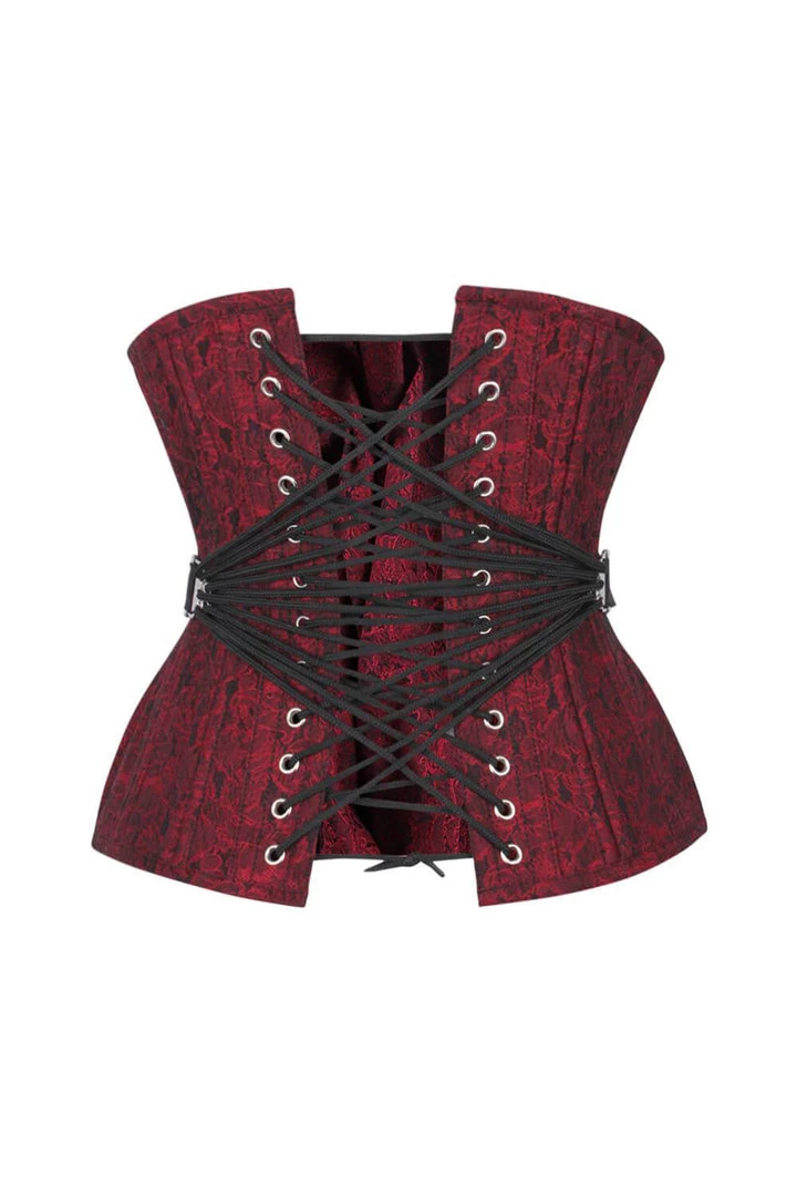Our stunning Fan Out underbust corset puts a unique look to a classic-looking corset. The fan lacing is a beautiful and more sleek way of waist training without having the bulky knot tied in the back on most normal laced corsets. This little cutie packs a punch and will give you that extra something to stand out from the norm! We are clearly a fan of this underbust brocade corset.