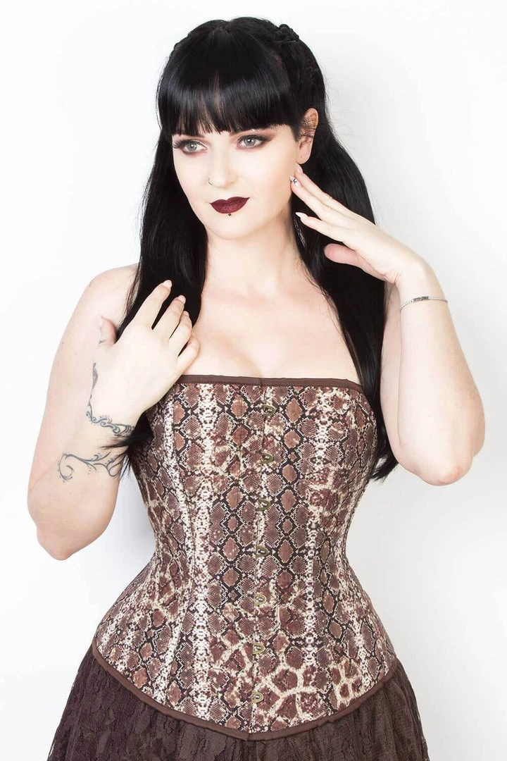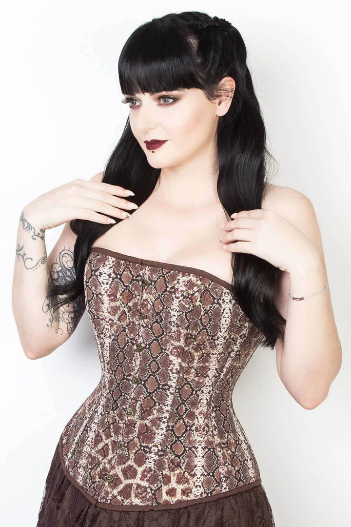 Our Seductive Snake overbust corset will have you doing just that slithering around and seducing anyone that crosses your path. This corset hit and hugs in all the right places to keep you looking sexy and sleek. Made on printed cotton, this corset is durable and comfortable all at once. Tired of the same ole same ole corset looks give this one a try and see the difference for yourself!