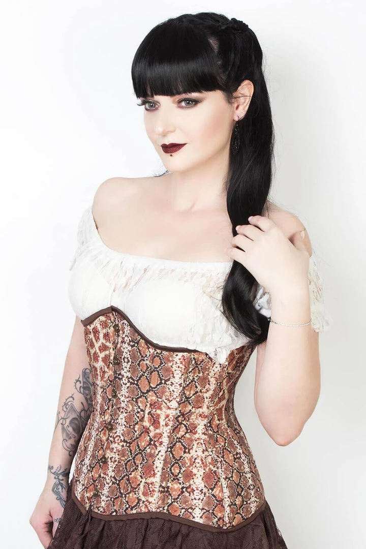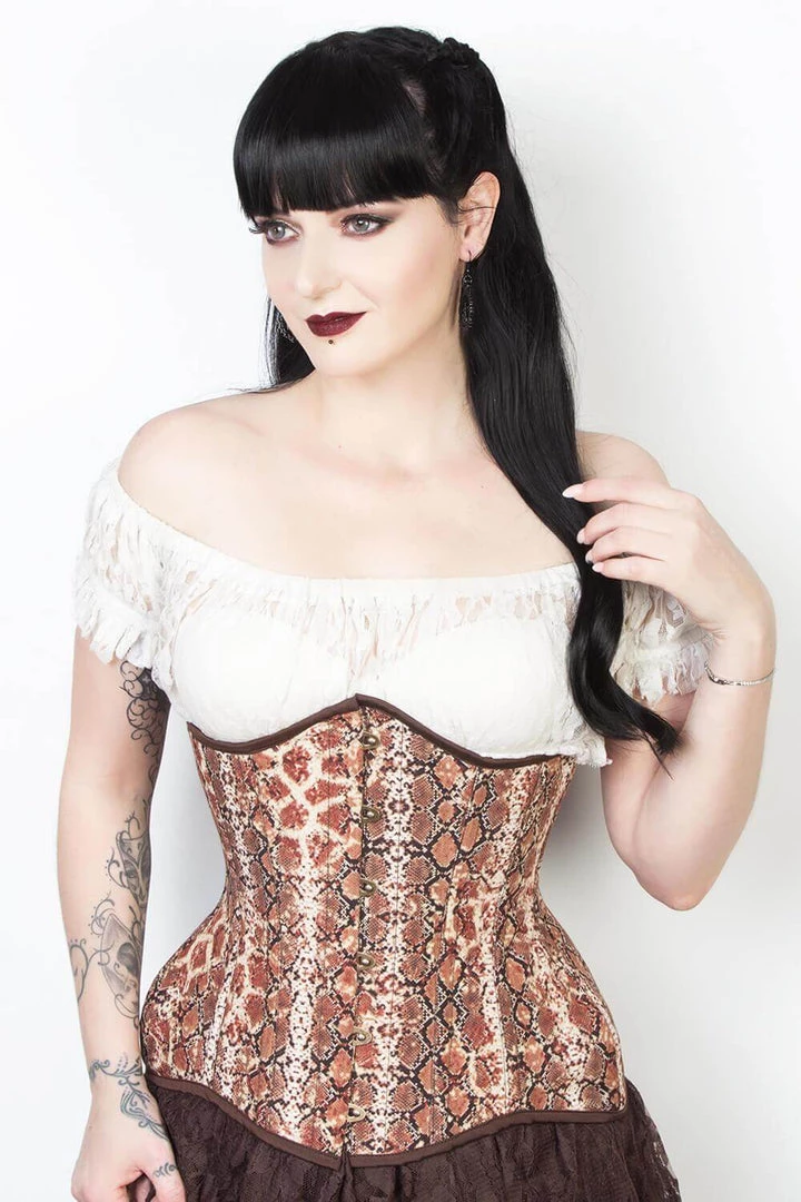 Our Seductive Snake underbust corset will have you doing just that slithering around and seducing anyone that crosses your path. This corset hit and hugs in all the right places to keep you looking sexy and sleek. Made on printed cotton, this corset is durable and comfortable all at once. Tired of the same ole same ole corset looks give this one a try and see the difference for yourself!