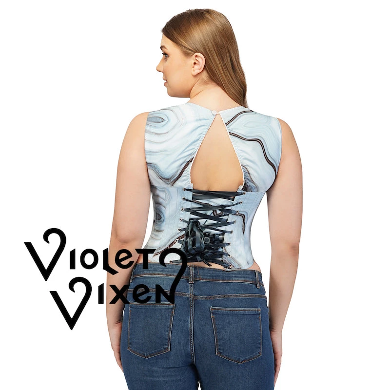 Our Swept and Swirled corset top is a cute, romantic, and functional corset top that is perfect for any occasion, you can dress it up with a skirt to have more of a flowy goddess look or just keep it casual with jeans. Either way, this top will be sure to be a great addition to anyone’s wardrobe that wants a cute top with purpose.