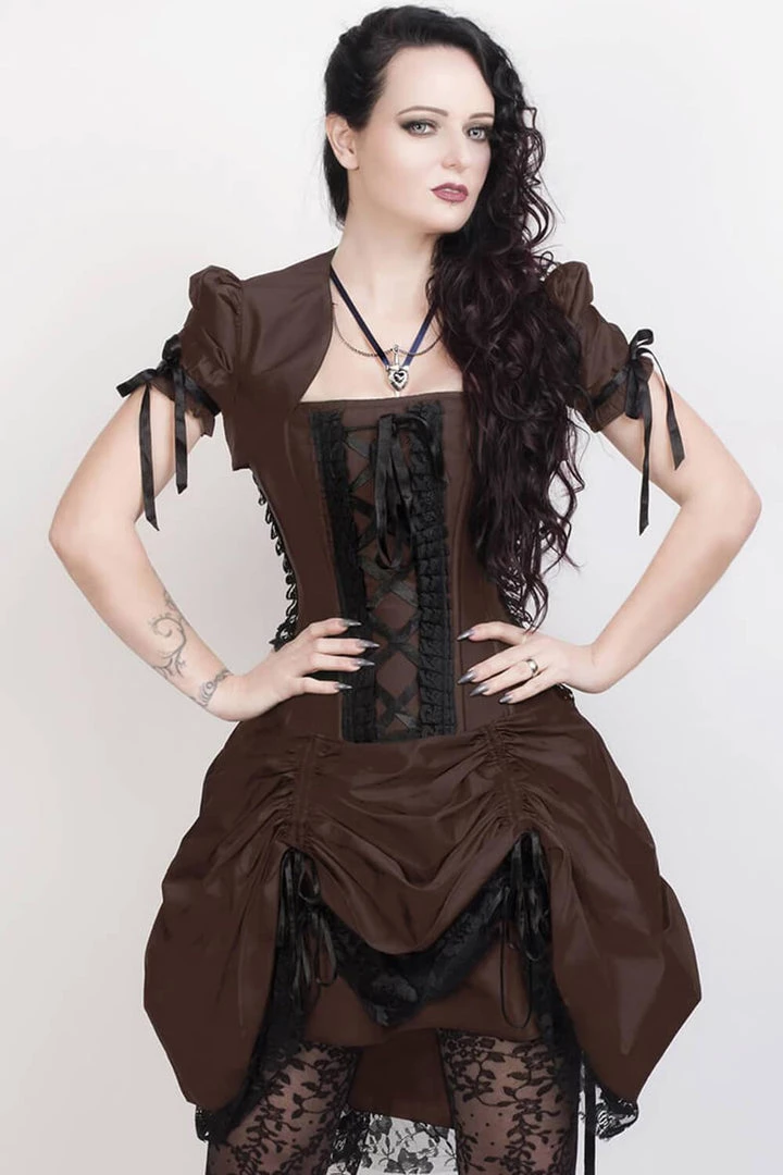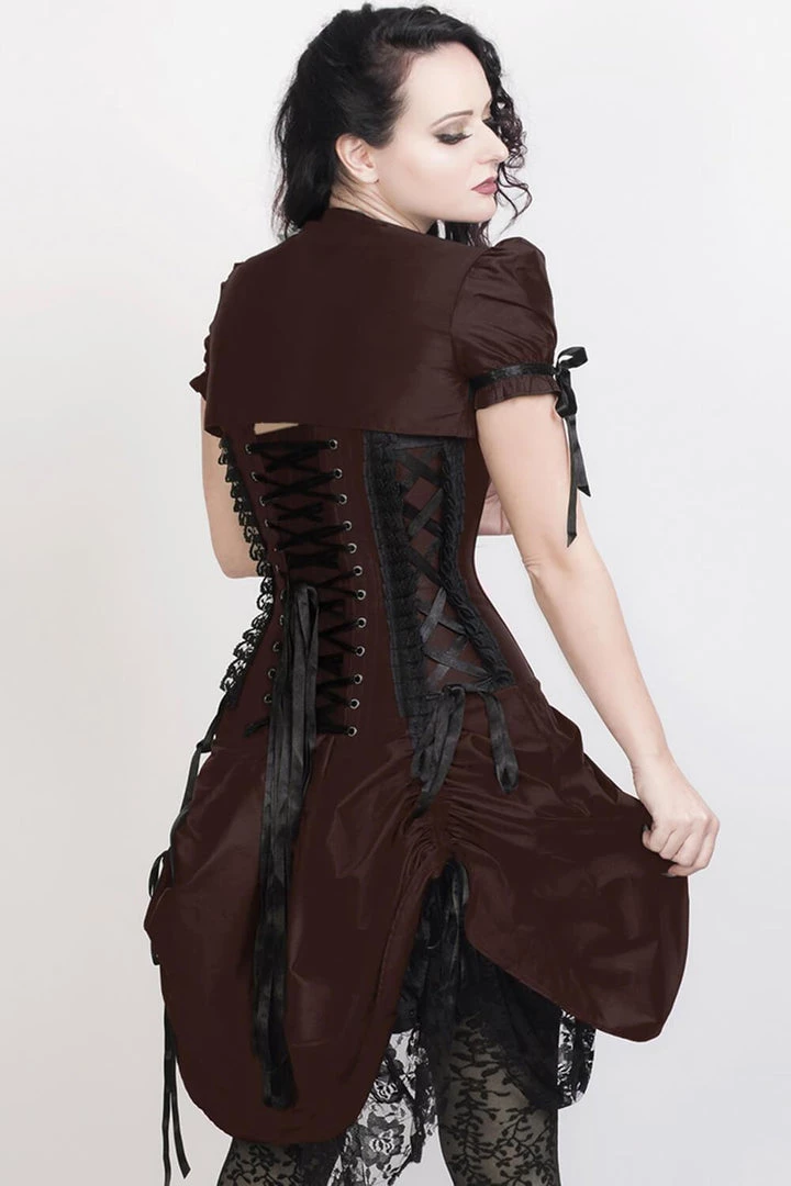 Our Saloon Babe corset dress is ideal for those who want to combine contemporary gothic fashion with steampunk and old-school western wear. The Saloon Babe dress can be perfect for just about any occasion from a formal event if you are tired of seeing the same dresses out over and over again or for a fun costume party!