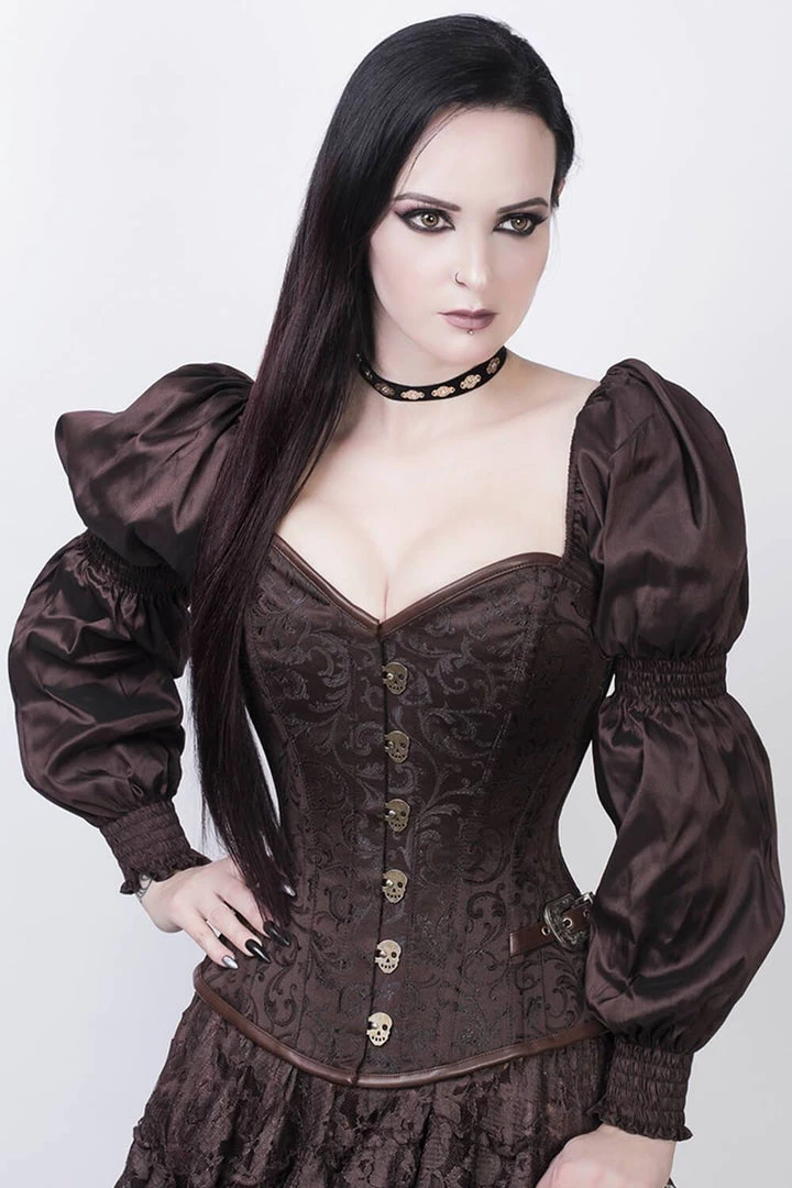 Our VIctorian Skull Puff Sleeve overust corset is the perfect blend of the grandness of the victorian era and the fun wild side of steampunk with gothic flair. Pefect for the Renn Fair or any ocasion where you want to show off this gorgeous piece of clothinig. This corset features amazing skull metal busks which gives a it extra for all you extra folks out there!