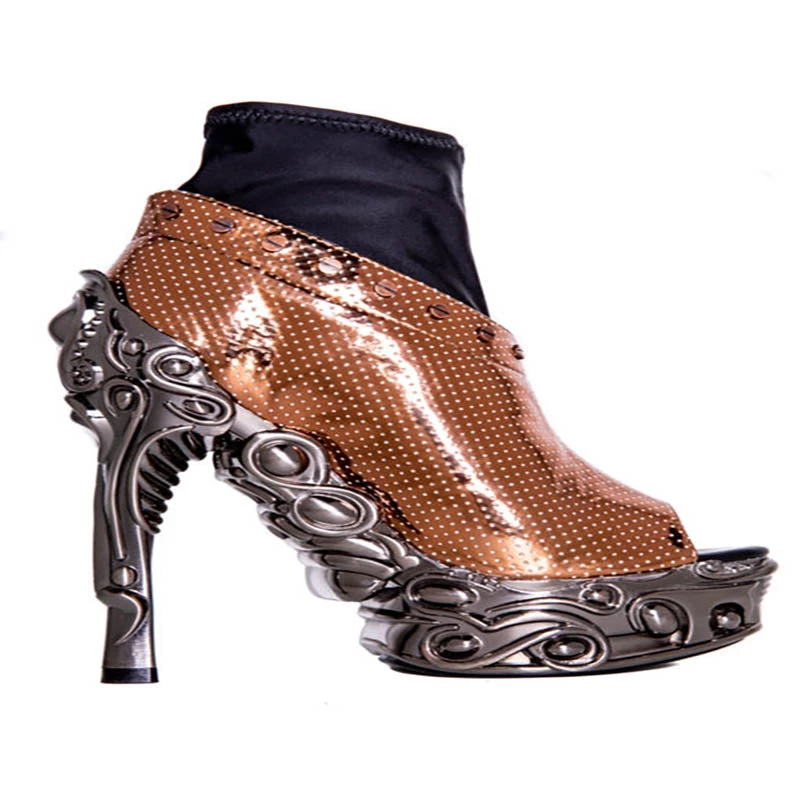 6″ custom molded heel w/ 1.5″ matching platform. Hades Proteus collection. Black patent vegan hologram upper w/ mini air holes. Silver metal studs lined on top with stretchable spandex inner for best fit and comfort