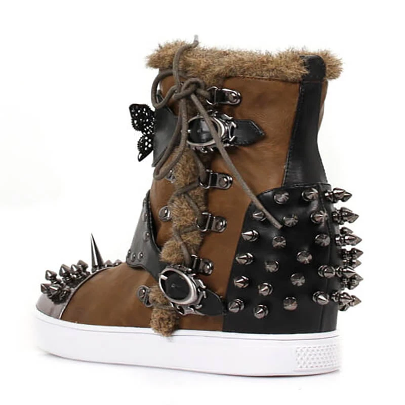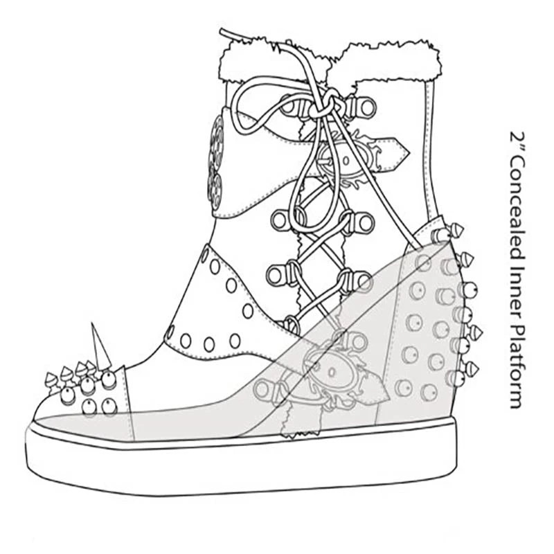 - Features faux-fur trim, lace-up design on the side, Hades signature metal butterfly, and adjustable flame buckles.
