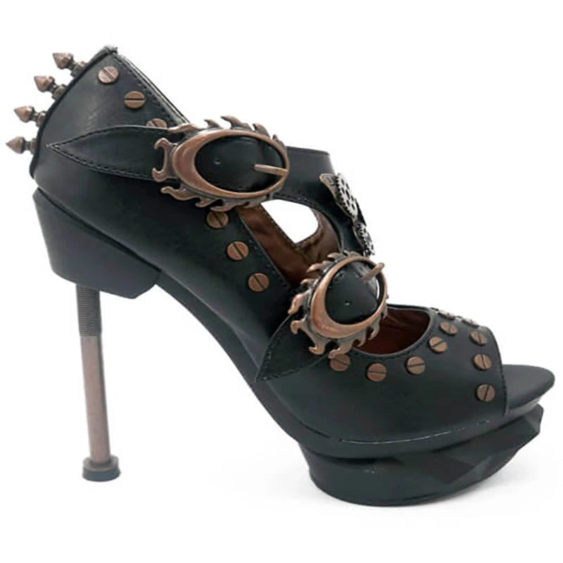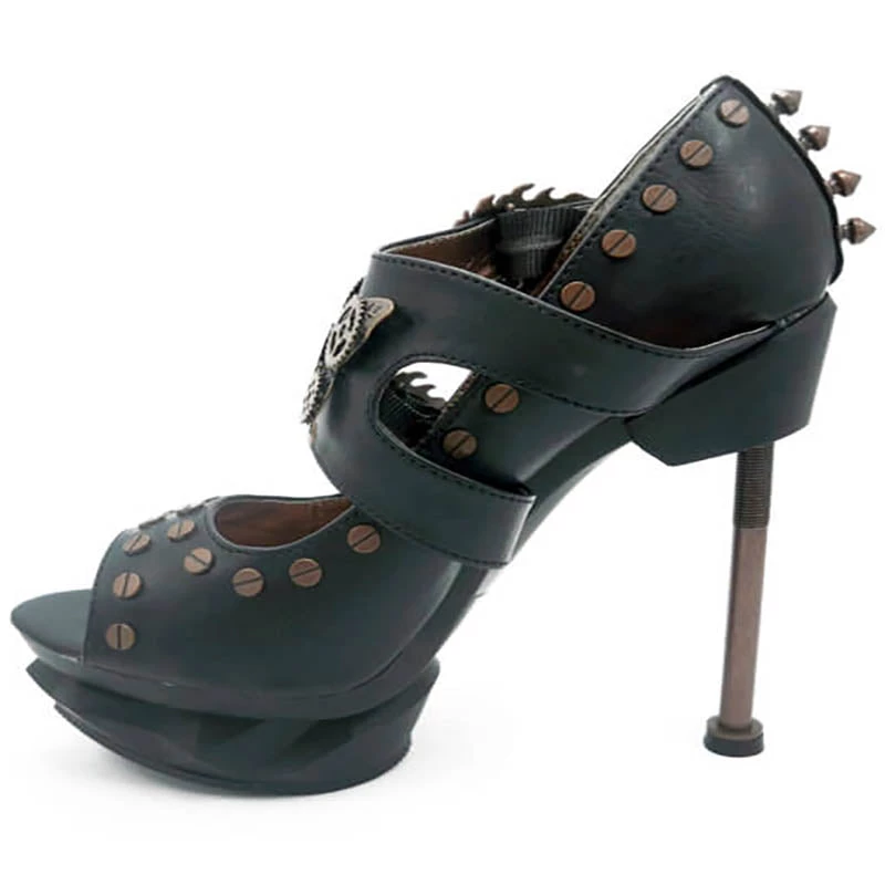 - Steampunk style peep toe pumps w/ thundra PU material.