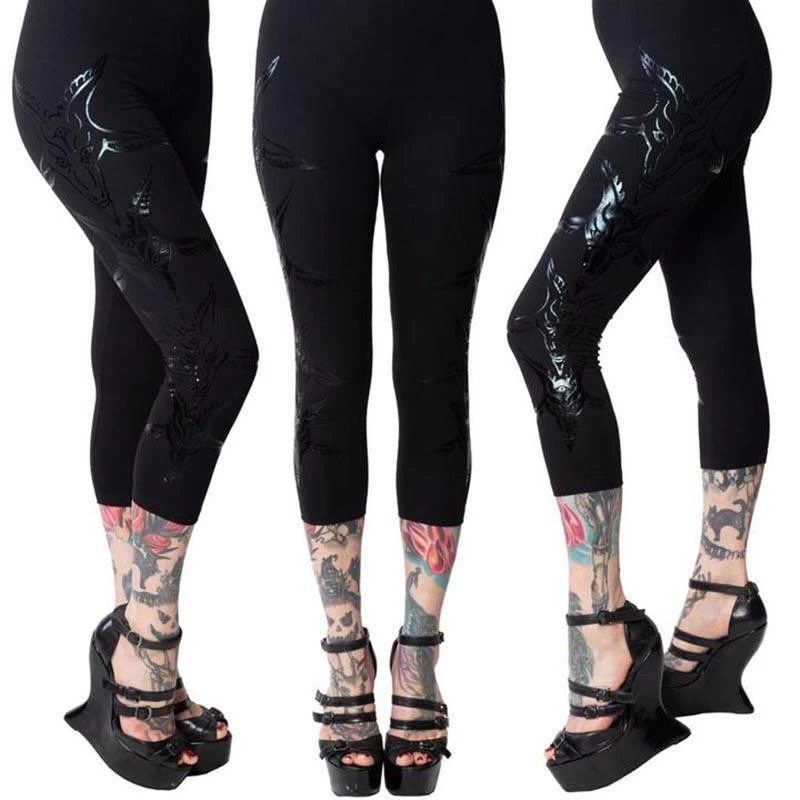 Subtly show your love for the dark lord with these black foil on black capri leggings!