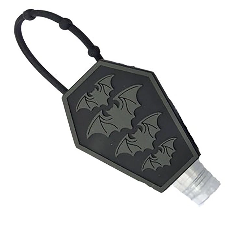 Take your hand sanitizer everywhere in style with our Bat Coffin Hand Sanitizer Holder, clip it onto the outside of your bag so you don’t have to dig through your bag with unclean hands. Hand Sanitizer Holder includes bat coffin holder and an empty refillable bottle that can be filled with your choice of hand sanitizer. Made out of Soft Silicone outside with a refillable plastic screw-top bottle inside