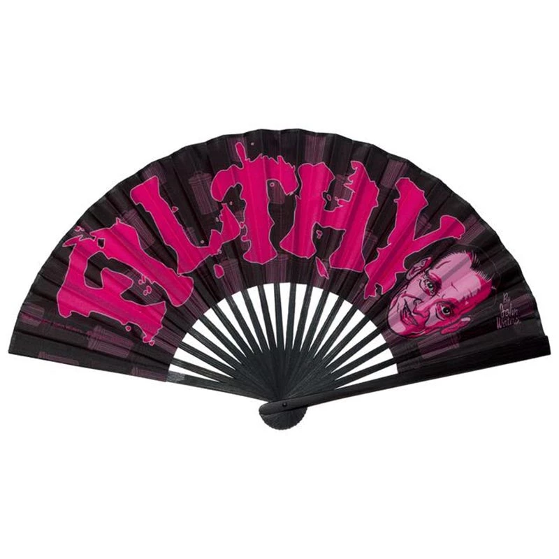 Officially Licensed John Waters Filthy Fabric hand fan, Perfect to keep you looking and feeling cool!!! Expands up to 16″. Height 9.25″ Wood with fabric design.