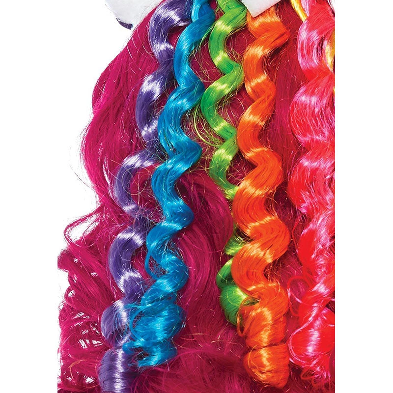 - Rainbow curls cascading down the back of the headband