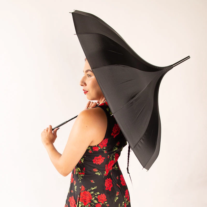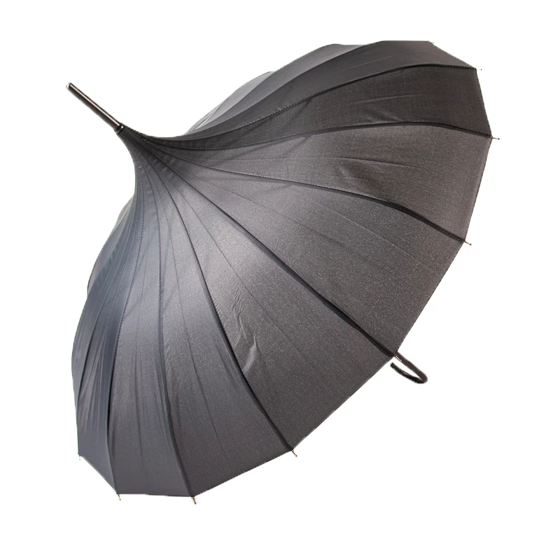 Life is not all lovely thorns and singing vultures but under this pagoda umbrella it could be. This beautiful Pagoda Umbrella is a classic inspired take on a familiar friend, featuring a smooth domed top. Great for taking a stroll on a rainy night or a hot day, this unique profile will have all the ghouls gawking.