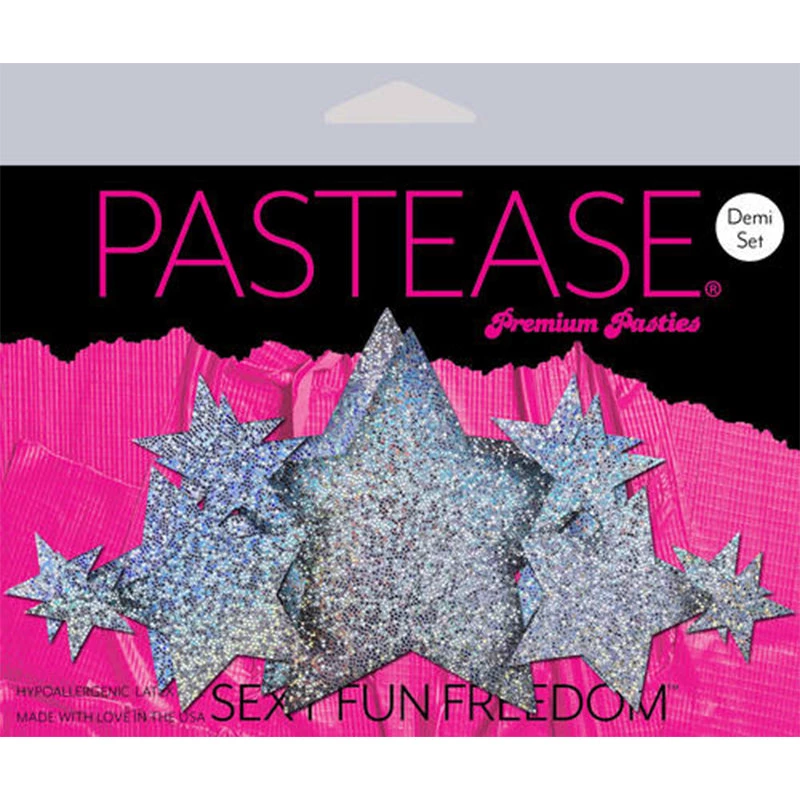 Silver Glitter Stars Breast Cover Nipple Pasties are hand-made of soft glittery material that forms to curves and resists wrinkling over hardening nipples. Just peel-and-stick on clean, dry skin. A Feminine, playful breast adornment can be worn on large or small breasts for added coverage and are so much more than a nipple cover!