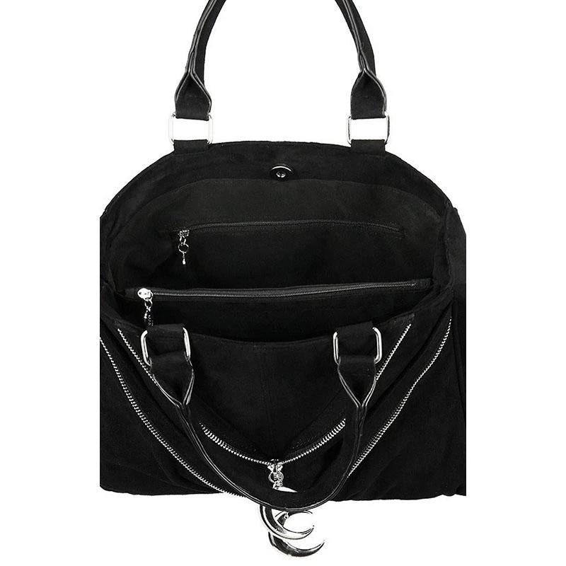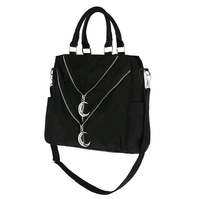 An icon worthy of investment, Double Zipped Moon Tote is a head-turning handbag for the gothic woman on-the-go.