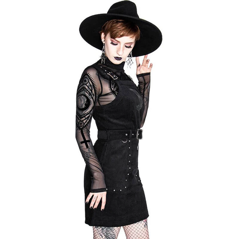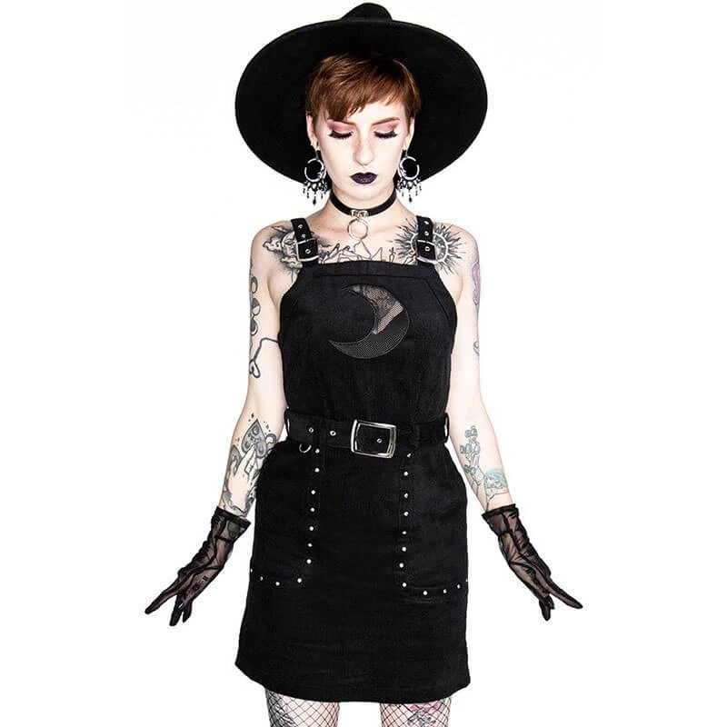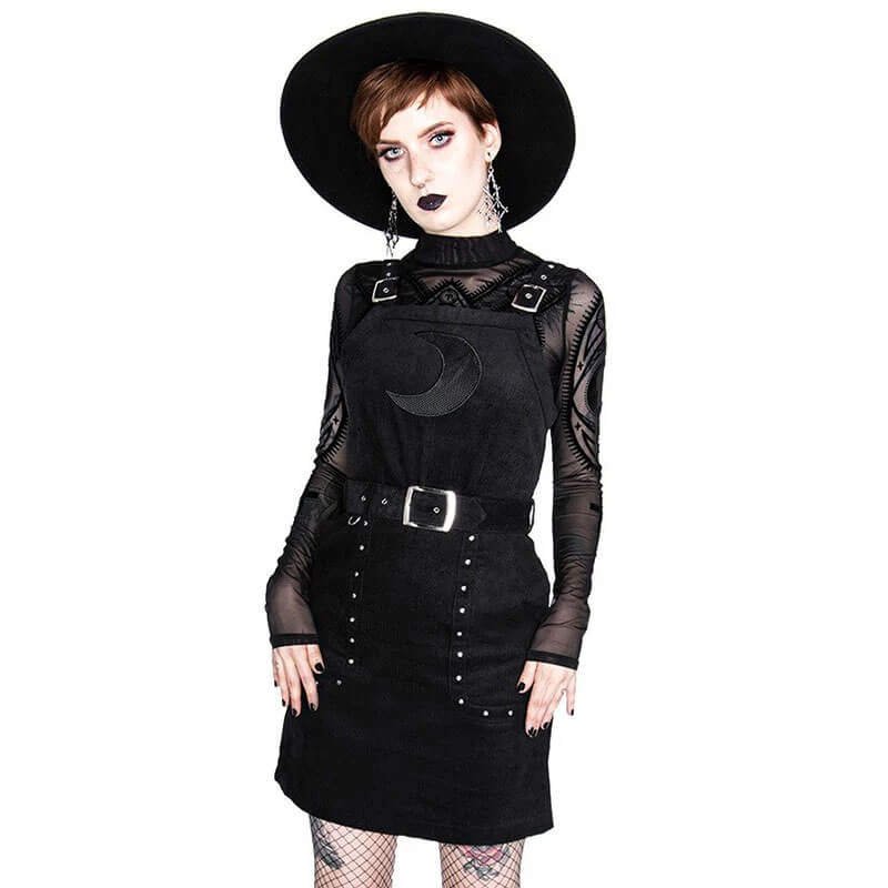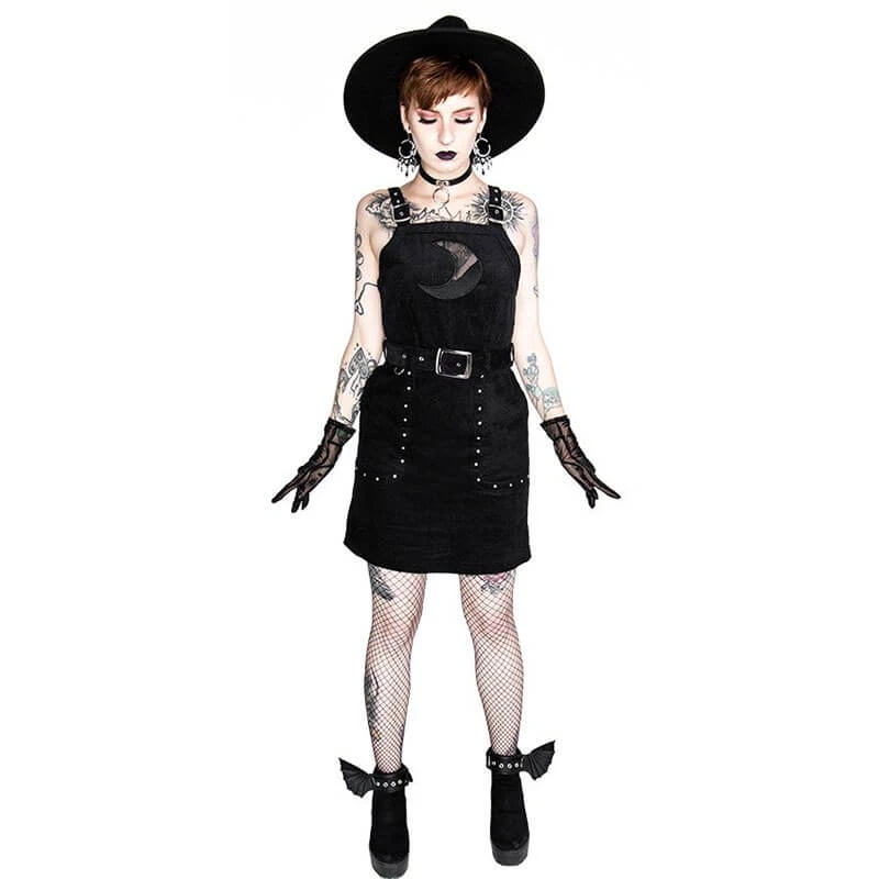 Our Crescent Corduroy Suspender dress is a cute and flirty dress that can be worn all by itself or used to layer with, making it perfect for any season! This fun dress has a hint of the 90’s with a dark spin on it!