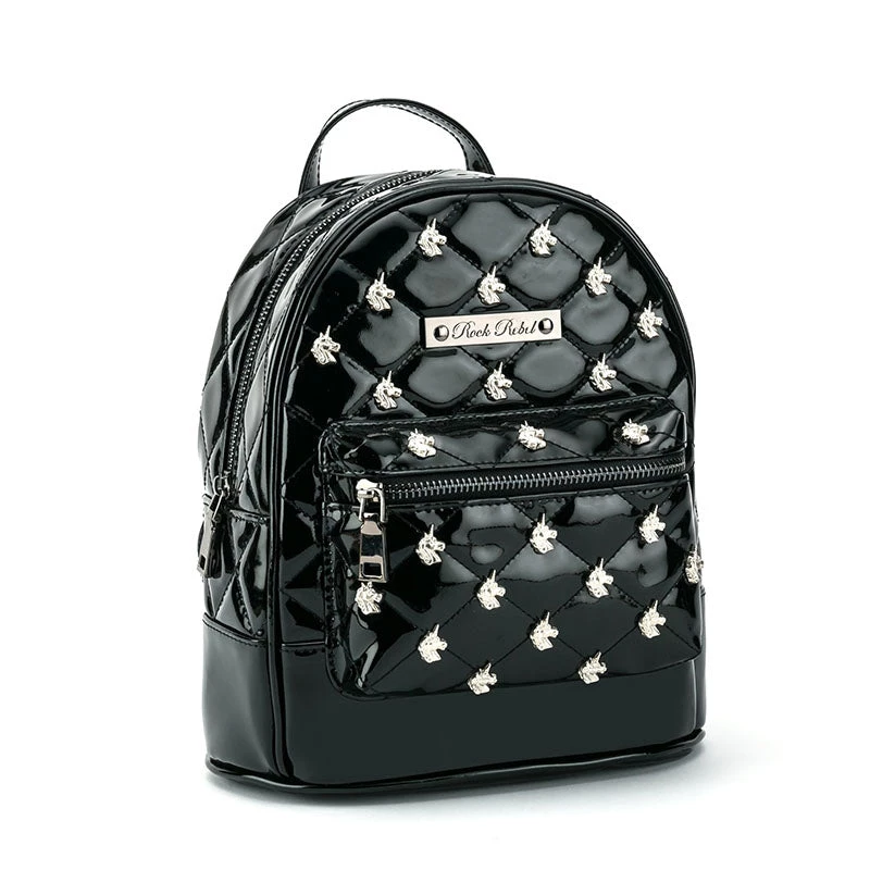 Our Black Glitter Unicorn Studded Backpack Purse mini backpack packs are quilted with metal studs. This backpack has unicorn metal studs and amazing purple glitter!