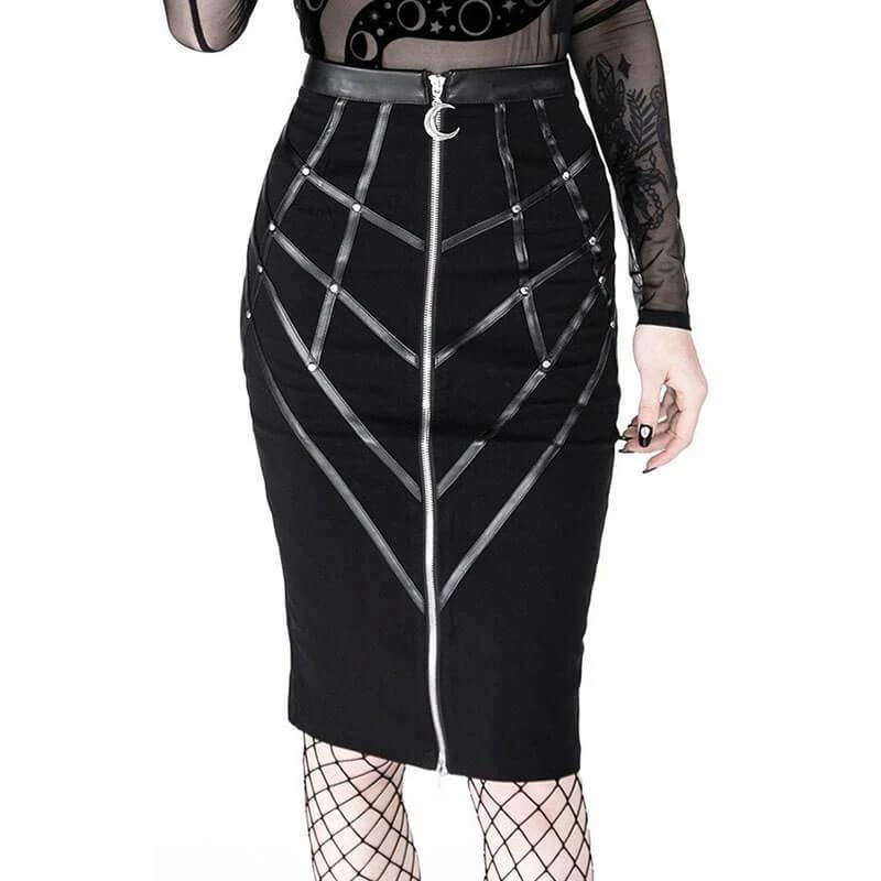 Our stunningly detailed high-waisted pencil skirt that is sure to add flair to any basic black outfit! Perfect for any season and layering with any outfit!