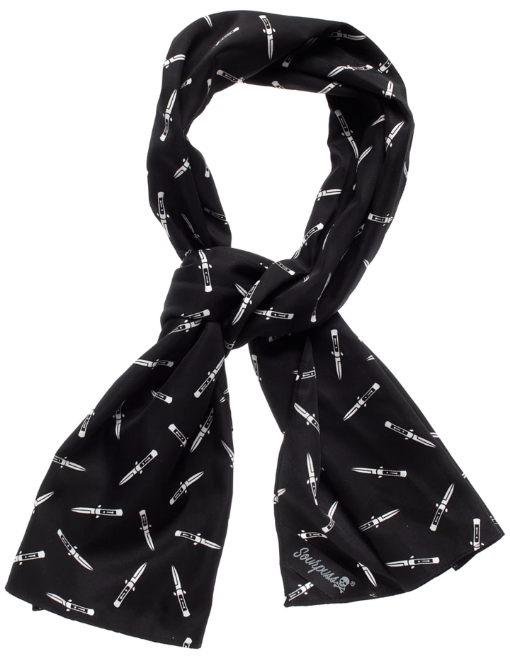 If you’re sweet but dangerous, then you need our Cut a B*tch scarf. Our newest silky scarf is ideal for the guy or gal who’s adorable but a little deadly, with an all-over switchblade print that’s too sharp to pass up. It’s the perfect accent for your hair, neck, handbag, or even your home!