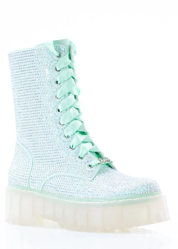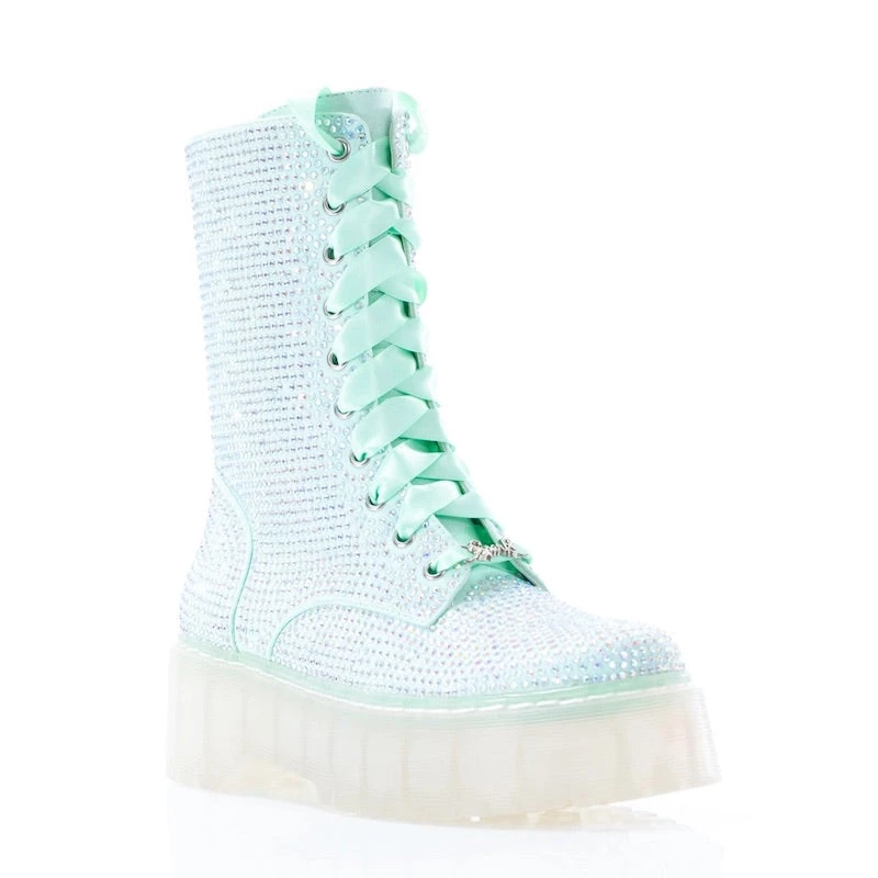 This trendy combat boot is a stylish way to upgrade your casual wear. Take your style up a notch with this stylish boot that pairs well with any look. The mint color gives off a nice, sophisticated look that will definitely get noticed. The genuine rhinestones are the finishing touch that makes this boot stand out from the rest. Additional features include a removable puffy and a silk lacing system. Feeling a bit underdressed? Don’t let a little hardship stop you from looking sharp. This classic combat boot has a timeless appeal that will look great with a range of outfits. A classic silhouette with a smooth faux suede upper, this boot will provide comfort and style for years to come. Grab one of these bestsellers today and take your look to a new level.