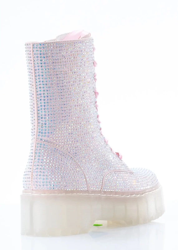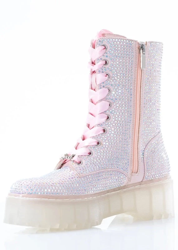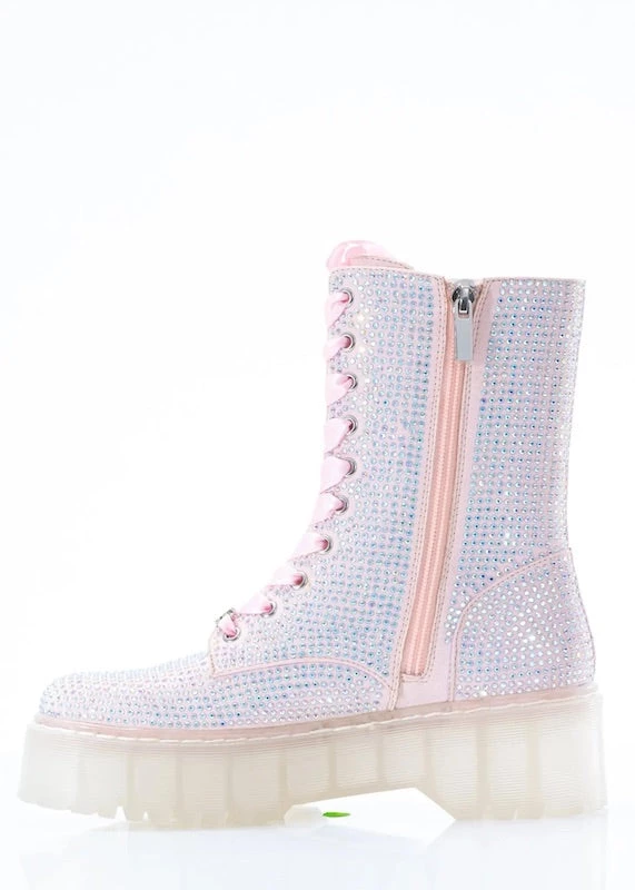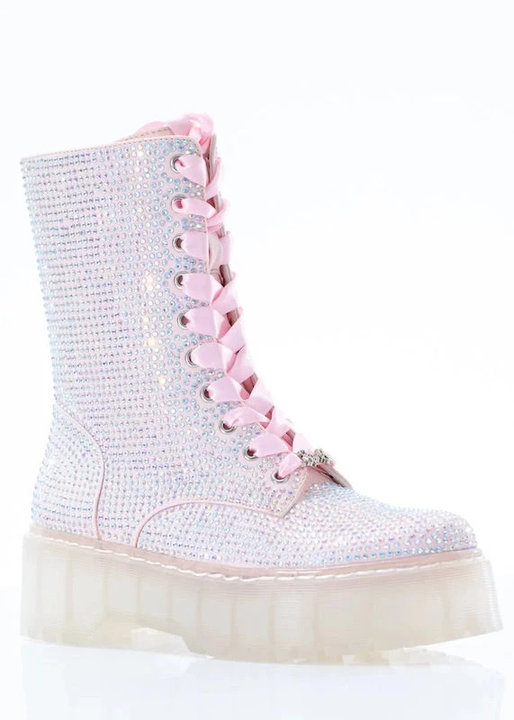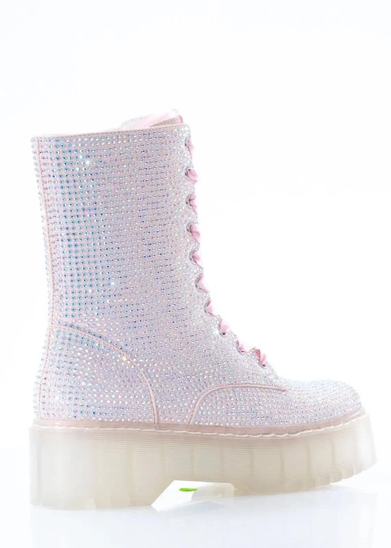 These cute pink combat boots are the perfect way to add some flair to your rugged, urban style. Features include a removable puffy balls, that adds a winter fun and flashy look. A fun and fashionable pink rhinestone design provides the finishing touch to these stylish boots. The silk laces provide a luxurious feel for your boots. The elegant rhinestone design is sure to be a hit with the entire world. Whether you’re looking for a chic and stylish shoe option to add to your wardrobe, or a simple and classic accessory with a little flair, these amazing rhinestone combat boots will be a perfect choice for you. You’ll love the look and feel of these fabulous combat boots. They look and feel like the real thing. Rhinestones and a silk laces make these festive and stylish combat boots a must-have for any occasion. Wear these with jeans, dresses, and skirts for a chic and stylish look.