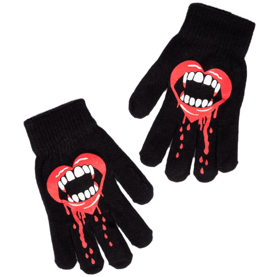 Bite me creep, see what happens. Scare the squares away with these vampire fang winter knit gloves.