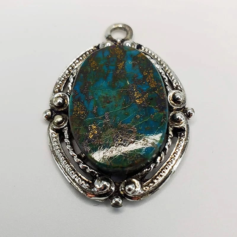 Violet’s Coffre Vintage Blue / Green Stone Silver Tone Pendant – 1 Of 1