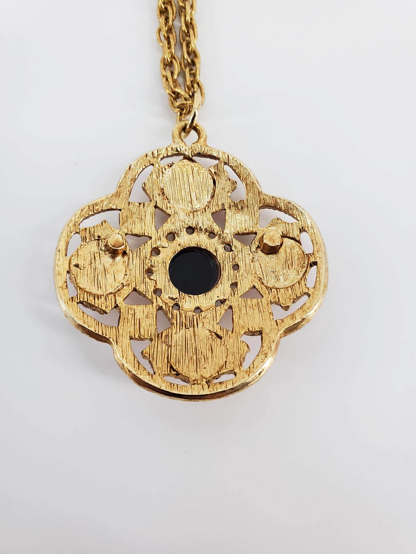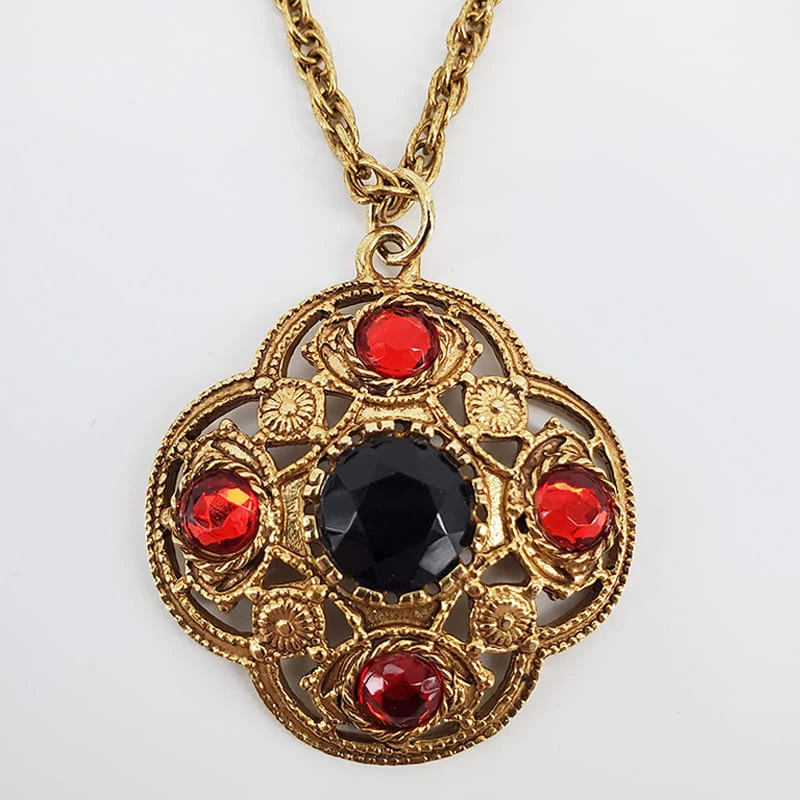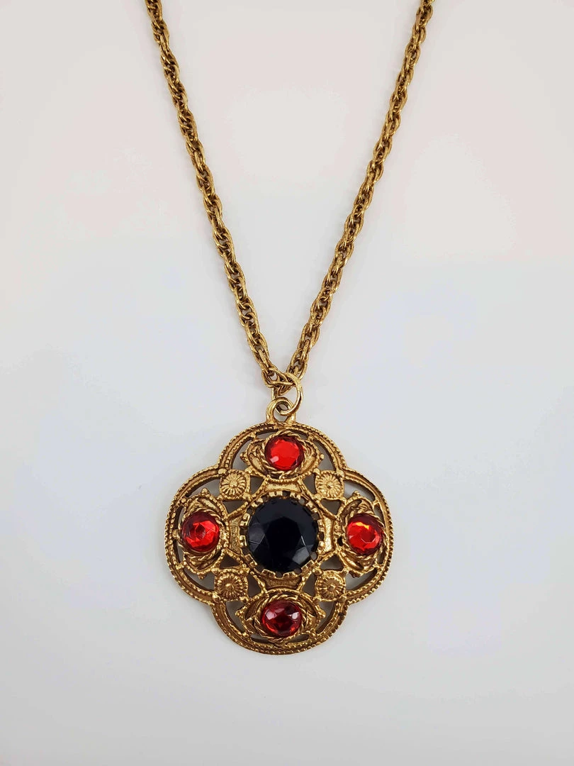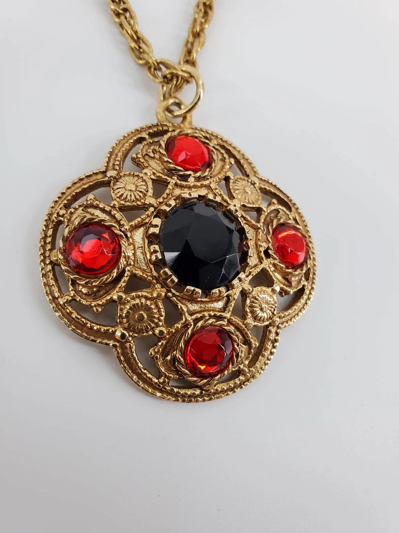 Violet’s Coffre Vintage Gothic Gold Tone Black And Red Jeweled Pendant Necklace – 1 Of 1