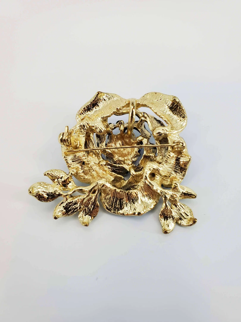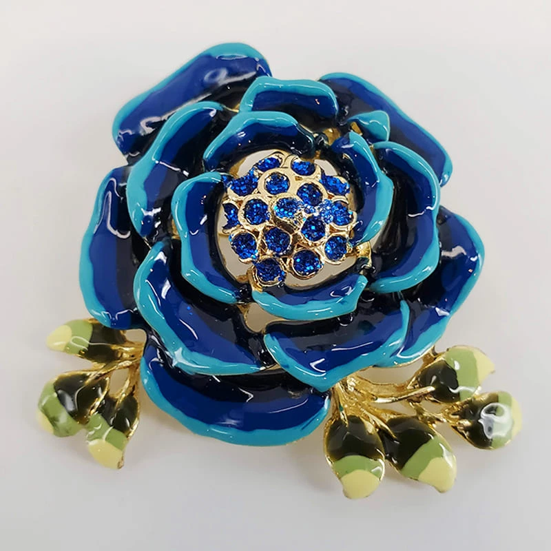 SKU: violet-s-coffre-6702343225446 Category: Vintage Tags: Blue, Broach, Flower, Jeweled, Leaves, Recommendations, Rose